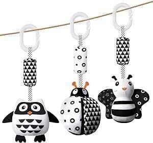 Aolso Baby Pram Pushchair Toys, 3 Pack Hanging Rattle Toys, Black and White Toy Rattle Baby Hanging Toys, High Contrast Sensory Educational Toy, Newborn Car Seat Toys for Boys Girls : Amazon.co.uk: Toys & Games