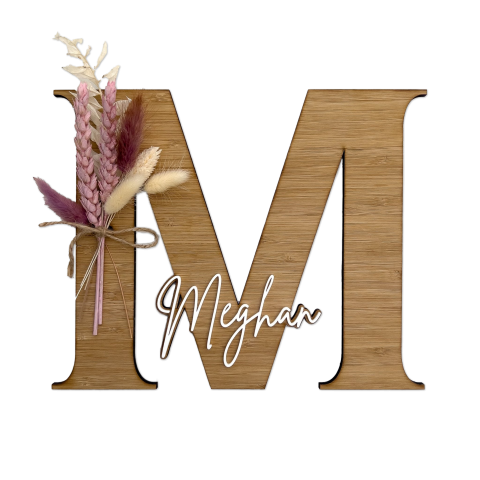 Ontdek onze prachtige gepersonaliseerde bamboe houten naambordje met droogbloemen, het perfecte kraamcadeau of decoratie voor de kinderkamer. Elk bordje heeft een uniek 3D-effect met de volledige naam in wit acryl. Kies uit Naturel, Roze of Blauw droogbloemsetjes en maak een blijvende indruk!