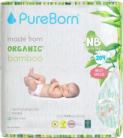 Couches Eco Organic Bambou, Taille Nouveau-né 5 kg, 272 Hypoallergéniques, Ultra Doux, Respectueux de l'environnement, Impression Assorti, Indicateur d'humidité.