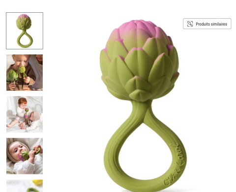 en toute liberté. Il est possible d'ajouter toutes vos envies cadeaux et de recevoir les dons directement sur votre compte. Avec les dons reçus, vous êtes alors libre d'aller acheter vos produits (comme ce 'Hochet légume Artichaut