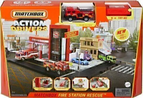 Matchbox - Action Drivers - Brandweer Reddings Speelset (met geluid). • De Matchbox Action Drivers Red de Brandweerkazerne Speelset bevat ongelooflijke...