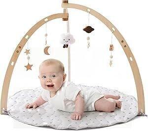 Promise Babe Arche de jeu bébé en bois avec couverture de jeu pour bébés,Nature bois arche de jeu bébé avec étoile lune nuages jouets pendentifs table à langer lit bébé couverture de bébé avec arche : Amazon.com.be: Bébé et Puériculture
