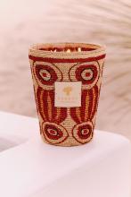 La vela perfumada Alasora está recubierta de rafia beige sobre la que se teje el motivo aborigen que representa los lugares sagrados, coloreados con una mezcla de ocre rojo y negro. Los colores de esta vela, tejida a mano por una cooperativa de mujeres de Madagascar, son los más africanos de todos.