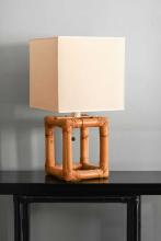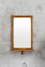 Rectangular mirror with pressed bamboo shelf and bamboo cane frame, natural finish - Italy 1970