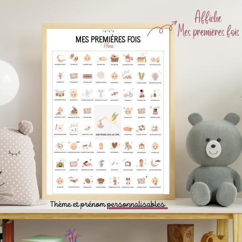 Affiche à tamponner | Affiche dates bébé | Premières fois bébé | Décoration chambre bébé | Porte Affiche   Possibilité d'ajouter le prénom de l'enfant Ajoutez votre personnalisation lors du passage en caisse. Format A3 : Merci de sélectionner envoi par mondial relay.