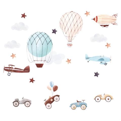 Créez une chambre d’enfant pour les amateurs de voitures et de ballons rétro dans l’ambiance d’antan avec des stickers muraux.