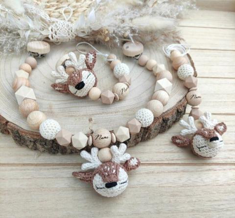 Ce produit est extrait d'une liste de naissance déposée sur Kadolog. Kadolog permet de créer des listes de naissance en toute liberté. Il est possible d'ajouter toutes vos envies cadeaux et de recevoir les dons directement sur votre compte. Avec les dons reçus, vous êtes alors libre d'aller acheter vos produits (comme ce 'Ensemble chaîne sucette fait main ') où et quand vous le souhaitez.