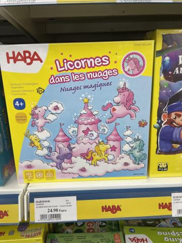 Ce produit est extrait d'une liste de cadeaux (Anniversaire, Noël, ...) déposée sur Kadolog. Kadolog permet de créer des listes de cadeaux (Anniversaire, Noël, ...) en toute liberté. Il est possible d'ajouter toutes vos envies cadeaux et de recevoir les dons directement sur votre compte. Avec les dons reçus, vous êtes alors libre d'aller acheter vos produits (comme ce 'Jeu Haba - Licorne dans les nuages ') où et quand vous le souhaitez.