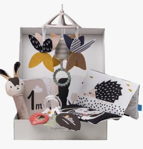 Ce produit est extrait d'une liste de naissance déposée sur Kadolog. Kadolog permet de créer des listes de naissance en toute liberté. Il est possible d'ajouter toutes vos envies cadeaux et de recevoir les dons directement sur votre compte. Avec les dons reçus, vous êtes alors libre d'aller acheter vos produits (comme ce 'Kit de jouets naissance Noir et Blanc ') où et quand vous le souhaitez.