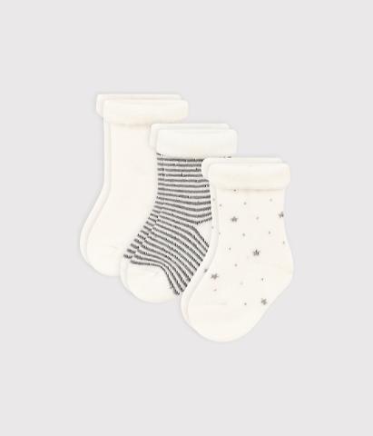 Ce produit est extrait d'une liste de naissance déposée sur Kadolog. Kadolog permet de créer des listes de naissance en toute liberté. Il est possible d'ajouter toutes vos envies cadeaux et de recevoir les dons directement sur votre compte. Avec les dons reçus, vous êtes alors libre d'aller acheter vos produits (comme ce 'Lot de 3 paire de chaussettes bébé en tricot uni et à rayures ') où et quand vous le souhaitez.