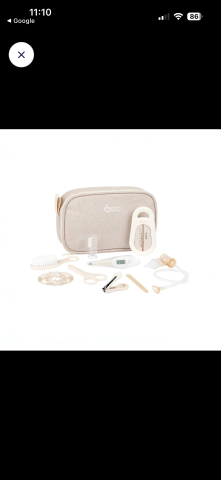 Une trousse de soin compacte et pratique pour bébé. - Trousse de soin - Fabriquée avec du tissu recyclé et un pack FSC sans plastique.- Filet intérieur avec élastiques - 9 accessoires inclus : Lime à ongle, mouche bébé par aspiration buccal (avec réservoir anti-retour de sécrétions), anneau de dentition, brosse à cheveux, brosse à dent, thermomètre de bain, thermomètre digital, coupe ongle et paire de ciseaux à bouts arrondis.