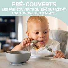 BEABA, Lot de 2 pré-couverts Inox et Silicone, Couverts Bébé, Couverts Enfant, Dès 10 Mois, Forme Ergonomique, Manche Ergonomique, Couverts Bébé Apprentissage, Velvet grey : Amazon.com.be: Bébé et Puériculture