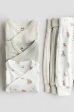 Ensemble 6 pièces avec bodies et pantalons - Vert clair/animaux - ENFANT | H&M BE