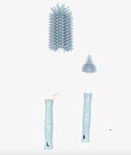 Un goupillon rotatif pour le biberon à lait (grand) et une brosse à tétine (petite) qui permet d'atteindre les endroits les plus difficiles.