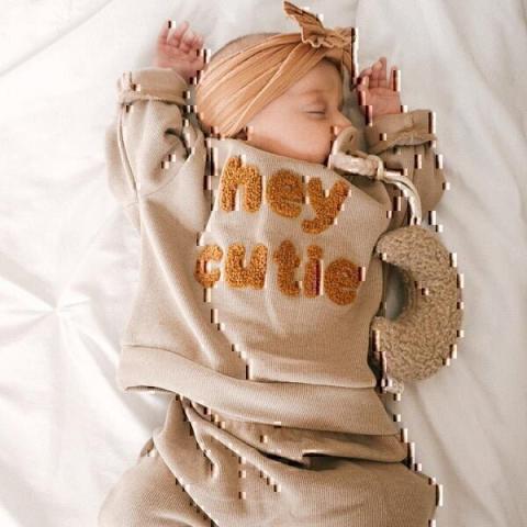 Shop the adorable Hey Cutie Set for your little one. Made with high quality soft cotton and embroidered with "Hey Cutie" text. True to size, with the option to size up for an oversized look. Easy to care for with cold machine wash and low tumble dry.