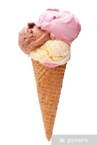 Twee keer een ijsje met 3 bolletjes, gewoon, omdat het onze huwelijksreis is.