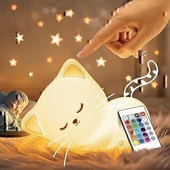 Kids Night Light, 16 Colors Remote Control USB Rechargeable Dimmable Night Light Baby Bedside Lamp for Girls Cat Decoration : Amazon.nl: DIY & Tools