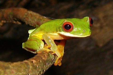 's Avonds gaan we op kikkerexcursie, gewapend met een zaklamp en begeleid door een gids, op zoek naar nachtdieren in de jungle.
