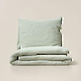 Heerlijk zacht slapen onder deze mooie peuterdekbedovertrek set van 100% organisch mousseline katoen in de kleur groen. De dekbedhoes heeft een afmeting van 120x150 en de bijpassende kussensloop een afmeting van 50x60. Door het lichte kreuk-effect van de stof, staat deze peuter dekbedovertrek set prachtig op elk peuterbed.
