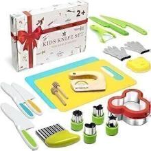 LETTO & TAILOR Kindermes, set van 21 kinderveilige keukenmessen met uitsteekvormen voor groenten, houten mes, snijplank : Amazon.com.be: Wonen en keuken