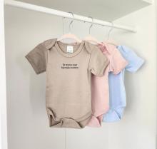 Body voor baby met grappige tekst 'Ik woon nog bij mijn ouders'. Deze body is beschikbaar in drie kleuren (bruin, roze, blauw) en zowel geschikt voor jongens als meisjes. Perfect als kraamcadeau of cadeau voor babyshower! Ontdek de body nu bij Babber
