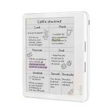 Deze Libra-e-reader heeft een fraai kleurenscherm. Op dit waterbestendige apparaat maak je handige notities met verschillende lay-outs (dagboek, weekplanner en boekreviews). Ook te gebruiken voor luisterboeken.