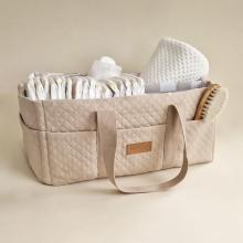 Met onze stylish Nappy Caddy heb je een eyecatcher op je commode en alles om je baby te verschonen overzichtelijk bij de hand. Verschoon je je kindje liever even snel op de bank? Geen probleem! Dankzij de handvatten kun je de caddy gemakkelijk verplaatsen. Het bevat een uitneembaar inzetstuk om drie afzonderlijke inte