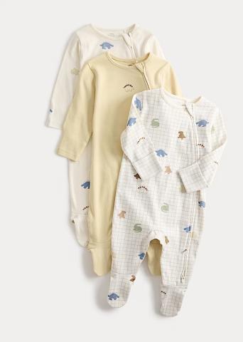 3er-Pack Schlafanzüge aus reiner Baumwolle mit Dinosauriermuster (0 Monate–3 Jahre) | IVORY MIX | Schlafanzüge | M&S DE