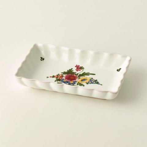 Medium moulded rectangular majolica bowl, 27 x 17 cm. Hand decorated, made in Italy.