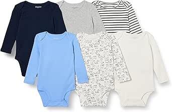 Amazon Essentials Body à Manches Longues Mixte Bébé, Lot de 6, Bleu/Chiens, 0-3 mois : Amazon.fr: Mode