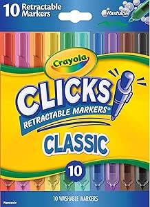 Amazon.com: Crayola Clicks Retractable Tip Markers (10ct), Washable Cone Tip Art Marker Set, Easter Basket Stuffer Essentials, Easter Craft Supplies for Coloring Books, Ages 3+ : Toys & Games