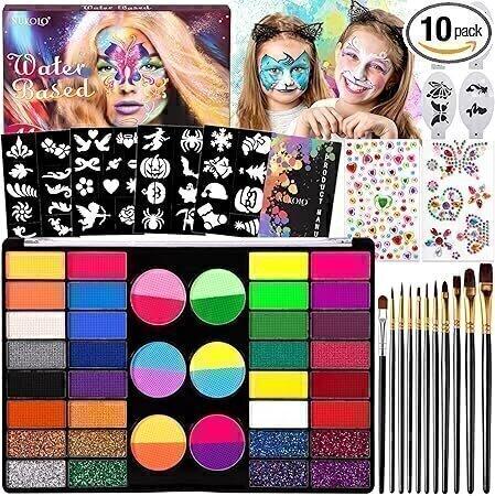 SACBRZZ Truccabimbi Kit Anallergici Atossici, 44 Colori Truccabimbi, con 11 Pennelli, 45 Stampini, 2 Stencil a Diamante, Trucchi Halloween Bambini, Face Paint per Halloween Carnevale Natale Party : Amazon.it: Giochi e giocattoli