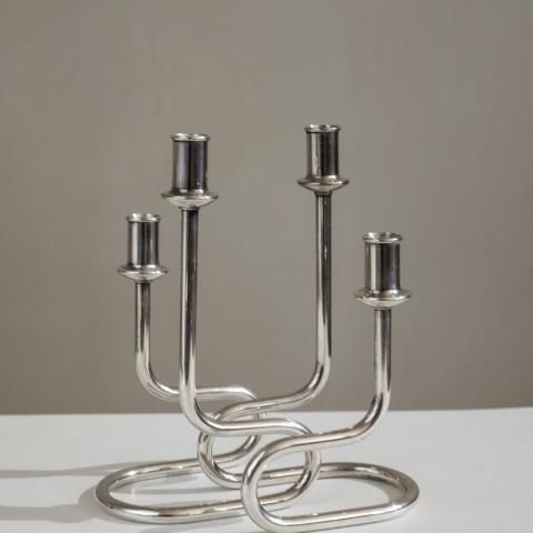 The Arrow Collection by Violaine d'Harcourt combines clean lines and minimalist design. Crafted in Portugal, this polished steel wall candle holder features a mirror-like finish, suited for contemporary interiors.