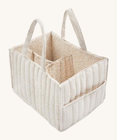 Shop Avery Row organic baby essentials at Babipur. Organise your nappies and baby changing essentials with the organic cotton Avery Row Nappy Caddy. This fabric nappy caddy is perfect for storing nappies, nappy cream and other baby essentials.