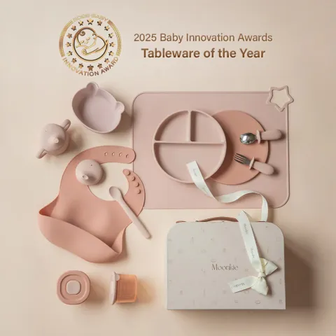 A baby cutlery set designed for little hands, helping Marguerite learn to eat independently in a safe and fun way.