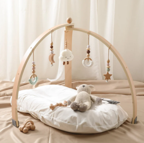 A playful baby gym to encourage Marguerite’s curiosity and support her sensory and motor development.