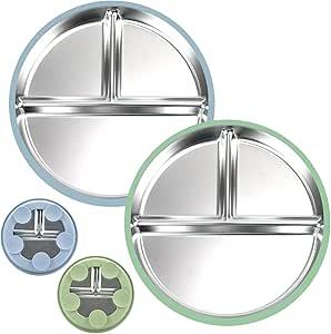 KATIMI Baby Plates with Suction Cup Stainless Steel - Stable Divided Plates with Suction Cup - Kids Plates with 2 Non-Slip Suction Cups - BPA Free and Safe : Amazon.com.be: Baby Products