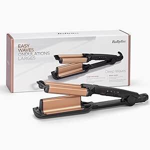 BaByliss Waver Ondas Suferas para el cabello – Barril Recubierto de cerámica, 3 ajustes de calor (160°C-200°C), Ondas sueltas, Sin frizz, Calentamiento rápido, Negro/Dorado, W2447E : Amazon.es: Belleza