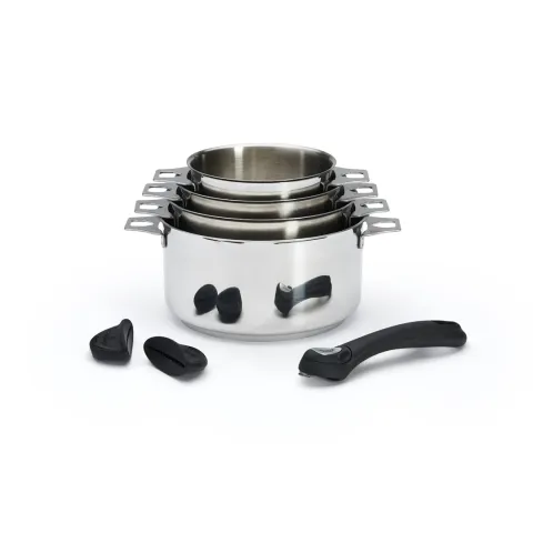 Lot de 4 casseroles, une poignée et une paire d'anses