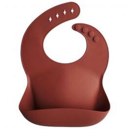 Avec le bavoir en silicone de Mushie, votre petit restera toujours propre et sec pendant le repas, grâce à sa matière déperlante.