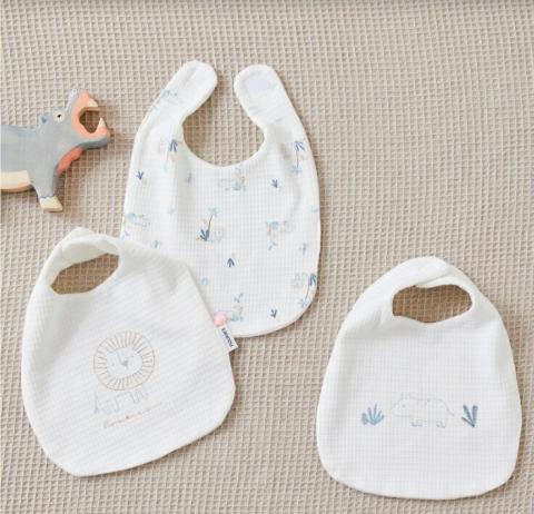 Bavoirs tout mignons et assez grands pour protéger les tenues trop cute de Mini Troussier. Serviront les premiers mois, avant l'introduction des solides.