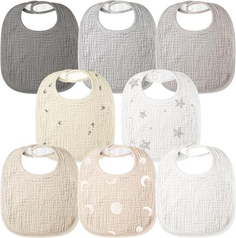 Bearmoss Baby Muslin Bibs for Babies, 100% Cotton Square Neckerchief, Baby Adjustable Baby Bibs, Soft Drool Bibs for Boys and Girls, Pack of 8 (Apricot Grey) : Amazon.de: Baby Products