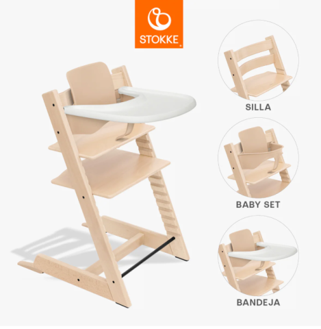 Cadeira Tripp Trapp® , BabySet2 e Tabuleiro Stokke® , cresce com a criança.