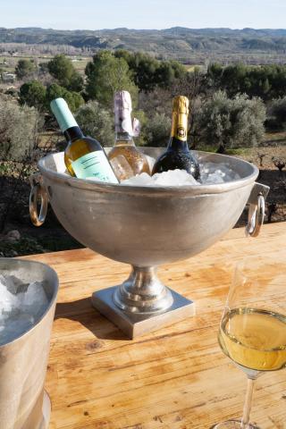 Champanera o cubitera grande de aluminio con pie y arandelas.