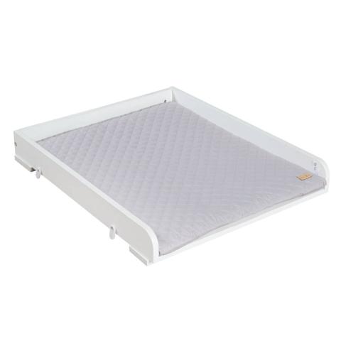 Changing tabling that fits on top of our laundry machine. A safe and compact changing solution with white lacquered wooden surface, perfect for small spaces.