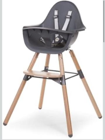 CHILDHOME, Chaise Haute Bébé/Enfant, Evolutive, Dès 6 mois, Réglable en Hauteur, Harnais 5 Points, Nombreux Accessoires, Compatible avec Transat Naissance Evolu, Bois de Hêtre, Evolu 2, Anthracite