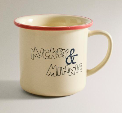 Children's ceramic mug with a contrast-coloured border and Mickey & Minnie Mouse ©Disney character motifs.