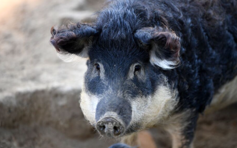 Un beau cochon laineux qui s'ajoute à la basse-cour pour boulotter nos restes?