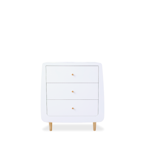 La commode à langer Ginni est une commode transformable élégante et sécurisée, dotée de tiroirs spacieux avec fermeture douce, sans angles vifs, et d’une conception stable anti-basculement empêchant toute chute même si l’enfant grimpe dessus. / Ginni changing dresser is a stylish and safe transformer chest with spacious drawers, soft-close mechanisms, no sharp edges, and a stable anti-tip design that prevents falling even if a child climbs on it.