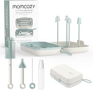 Momcozy Conjunto de escovas 7 em 1 para biberões, kit completo de limpeza de biberões com escova de silicone, escova para mamilo, escova para canudos e prateleira de secagem : Amazon.es: Produtos para Bebé